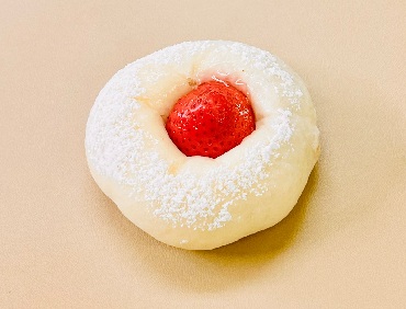 もちもちの白生地にいちごジャムと白あんを包み、いちご大福のように仕上げました